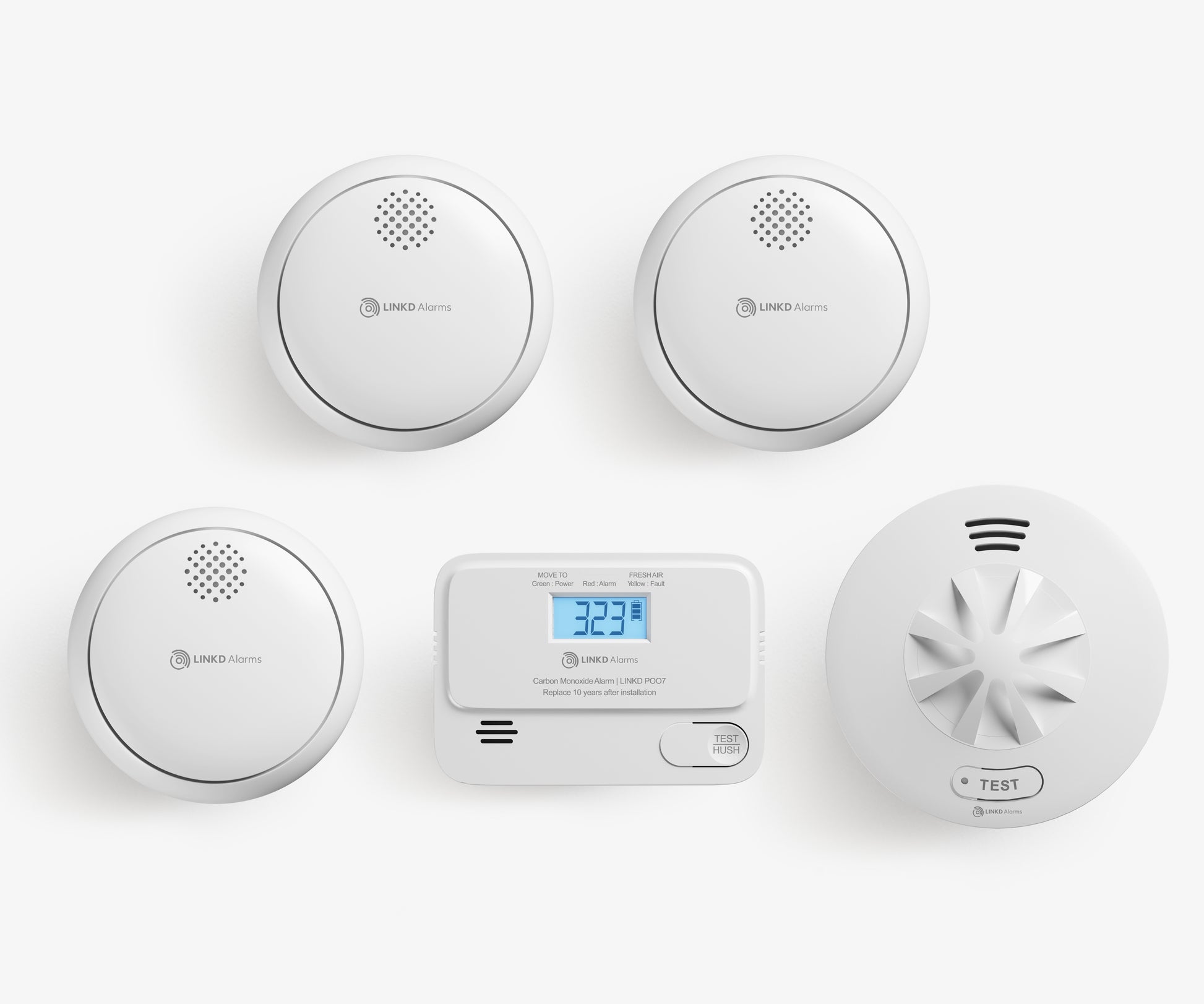 • 3x Smoke Alarm, 1x Heat Alarm, 1x Carbon Monoxide Alarm