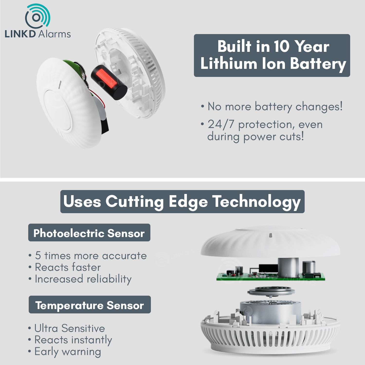 All alarms interlink wirelessly and feature a sealed & tamper proof battery